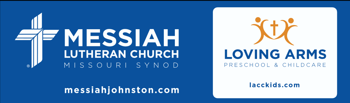 Messiah Lutheran Church and Loving Arms Pre School & Child Care invite you to bring the kids to this fun Fall event! We’ll have Trick or Trunk Outside – and — Games, Treats and Fun Inside! Bring the whole family! Non-Scary costumes are welcome. 5:30 to 7:00pm. www.LACCkids.com or www.MessiahJohnston.com Looking forward to seeing you there!
