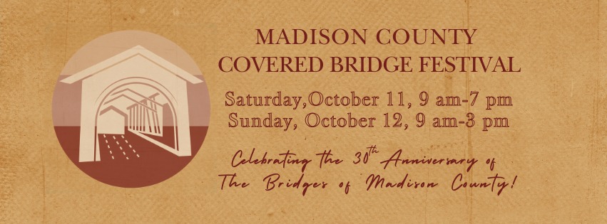 This fall, step into the heart of Madison County at the Covered Bridge Festival! On Saturday, October 11, 9am-7pm explore over 150 vendors and artists showcasing crafts, food, live demonstrations and music on Winterset’s Historic town square. Packed with something for everyone, bring your family and friends and experience the Madison County Covered Bridge Festival. https://exploremadisoncounty.com/covered_bridge_festival/